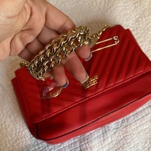 No stains just has some marking from the chain on the back and bottom. Check photos for detail