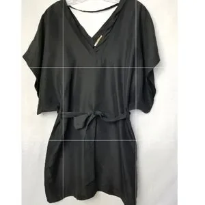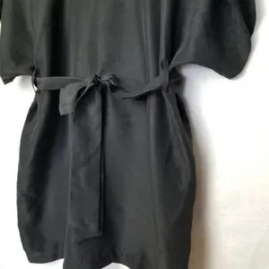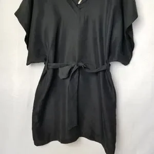 Piko 1988 Black Silk Short Dolman Sleeve Belted Mini Dress Size Medium