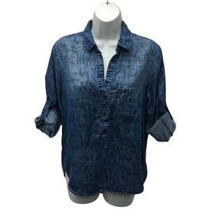 Cloth & Stone Blue Tencel Roll Tab 3/4 Button Pullover Shirt - Women’s XS