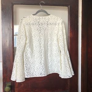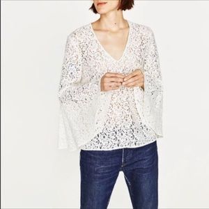 Gorgeous Lace Exaggerated Bell Sleeve Pullover V Neck Blouse by Zara.