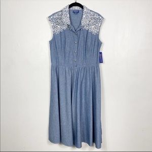 Pendleton - Sleeveless Chambray Fit and Flare Eyelet Detail June Shirt Dress