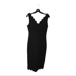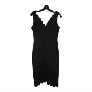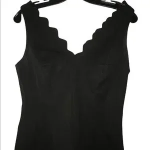 EUC. - Only worn once, Banana Republic, black, scalloped edges inside front and back v-neck and bottom of dress, darted at breast, stretchy fabric, dress up or down.