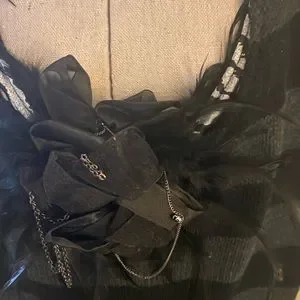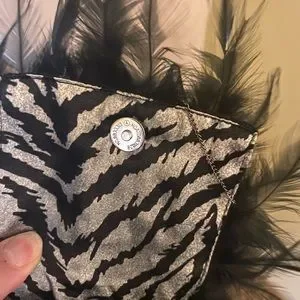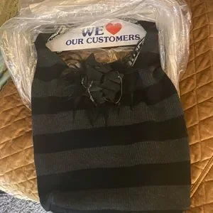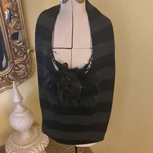 Alice + Olivia by Stacey Bendet striped knit bag black and grey stripes. Single flap shoulder strap, satin printed lining. Three pocket at interior wall, and one with a zip closure. Freshly dry cleaned.