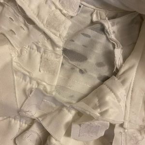 Bought from Chasing Fireflies. Washed. The waist is elastic. The neck has Velcro closures. The hat is a little adjustable with Velcro and tying the fabric. The very bottom has a little worn area due to walking — not bad at all. This is a well made costume that I paid over 55 for.