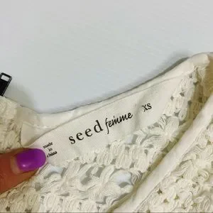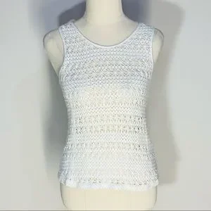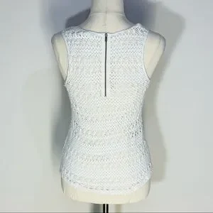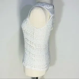 SEED FEMME Womens White Cream 100% Cotton Crochet Sleeveless BOHO Top Size XS