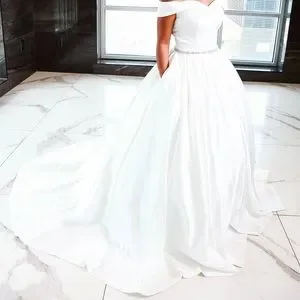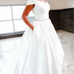 Sweetheart Sleeveless Wedding Dress 2021 Crystal Belt and pockets in size 10 dress has never been worn by a bride- just for picture purposes.