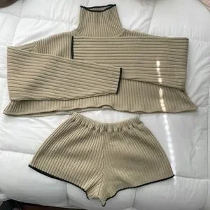 TRADED Firebird Reconstructed Cropped Wool Knit Turtleneck/ Shorts set
