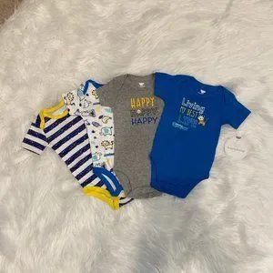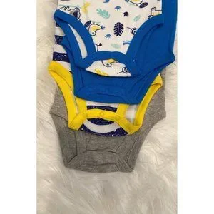 Koala Baby Boy 4 Short Sleeve Bodysuits, Size 3-6 months. Various bright colored and printed bodysuits. 100% Cotton. Cute brightly colored baby basics.