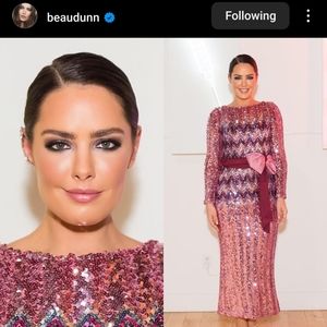 DRIP. This is a vintage Haute Couture 1970's sequin evening gown. In ten years I've only seen 2 others, one worn by model and artist Beau Dunn (seen posing with Lily Collins), and the other on a Fashion Week magazine cover. The sequins are immaculate, the ombré pattern is unmatched. It's the most beautiful dress I've ever seen. Such a rare find, and no flaws to note. fully lined, except the sleeves. Zig-zag ombré pattern is absolutely stunning, colors are just perfect. Size small.