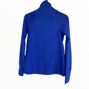 WOMENS NIKE DRI FIT BLUE ZIP UP JACKET W/THUMBHOLES LOGO ON SLEEVES SIZE L