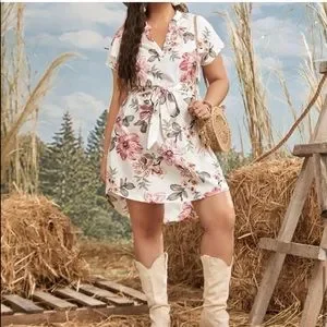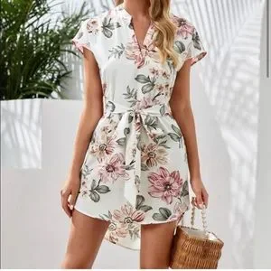 LAST ONE: Boho floral print high low belted mini dress