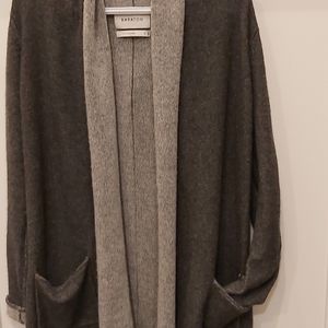 Babaton (Aritzia) wool and cashmere Beekman sweater. Charcoal grey with lighter grey. Open style cardigan with patch pockets on the front. Super soft