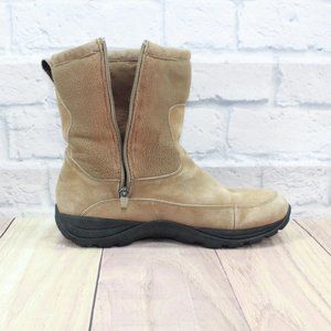 LL BEAN Tan Suede Fleece Zip Primaloft Insulated Boots Size 10.5 M