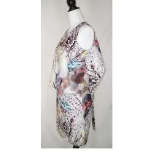 NWT Nicole Miller White and Blue Floral open back dress
