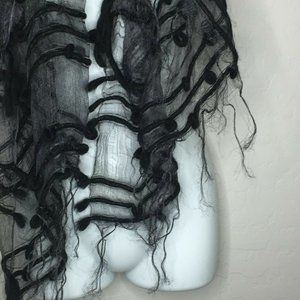 Black Sheer Womens Scarf Fringe Striped Fashion One Size 66" Long Accessory