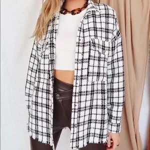 12th Tribe White/Black Plaid Shacket - One Size