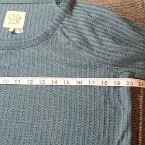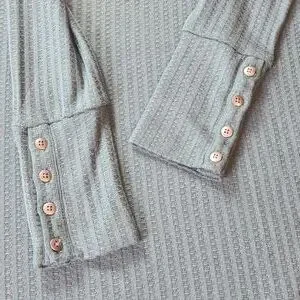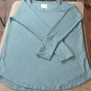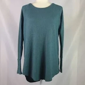 Long 4 Button Sleeves, Scoop Neck Thermal Top, Teal Waffle Knit, Size Medium.