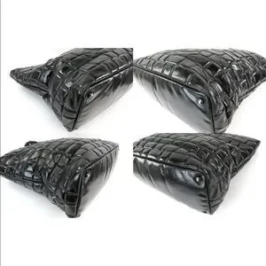 Silvertone hardware is tarnished. Exterior and interior: Leather has discoloration, spots, scuffing, light peeling, scratches, cracks, wrinkles and wear. Tarnished hardwares. Not New!
