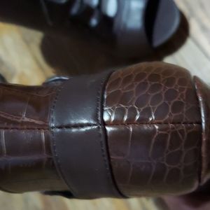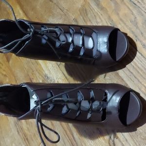 Chocolate Brown NWOT Heels..with tie up in front Open toe. The back of shoe and heel is a different shade of brown. Gorgeous color and bootie shoe.
