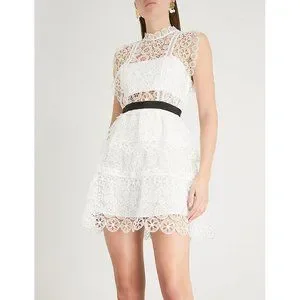 SELF PORTRAIT Circle Floral Lace Tiered Mini Dress
