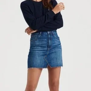 New with tags, never worn. The tag accidentally ripped off as I was taking pictures, but I still have them (see pictures). Lucky Brand's "Old Favorite" Mini Skirt in a medium blue wash with whiskered detailing. Size 26. Retail $69.
