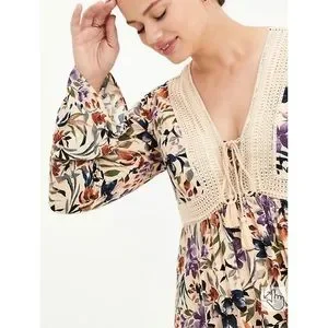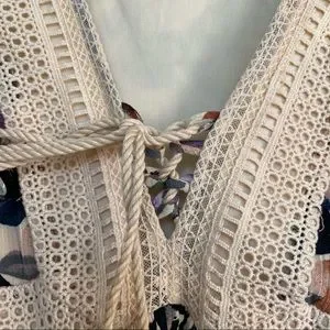 • Floral with lace pattern & subtle cross tied front