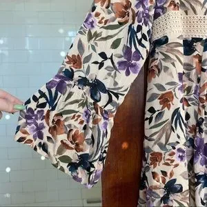 NWT Torrid Floral Babydoll Fit Plus Size Tan Skater Dress w/ Lace Up Neckline