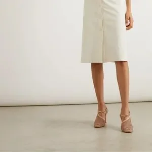 BOTTEGA VENETA Chain-embellished macramé and leather mesh pumps beige 37