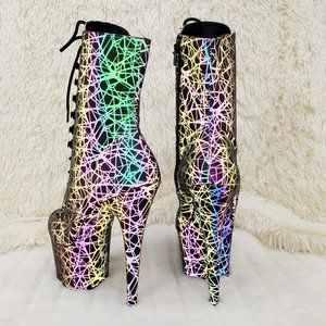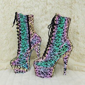 7" (178mm) Heel, 2 3/4" (70mm) Platform Lace-Up Front Ankle Boot Featuring Reflective Lines