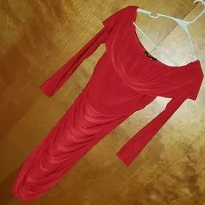 Ruched red dress. Size US 8. I had to sow the bottom corners because I didnt like how it looked before. No Trades.