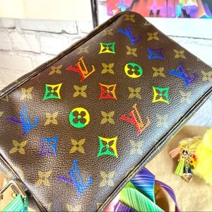 Louis Vuitton Trousse 23 Crossbody bag Custom Painted in rainbow with charms