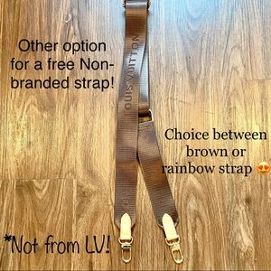 Choose between ONE FREE NON-branded crossbody nylon strap! (Rainbow or brown-straps not from LV)