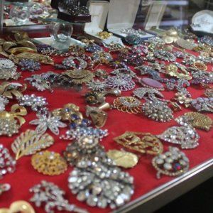 I design jewelry, purses, and clothing using vintage costume jewelry in any condition.