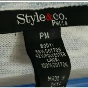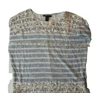 Women's super cute Blue, white, striped size Medium Petite Top. Good condition! Clean & ready to wear. Approx measurements FLAT Lay, are Located in the photos. Will ship out Fast. Thank you.