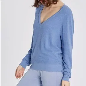 NWT Wildfox Dusk Blue Baggy Beach Jumper Deep V Sweatshirt