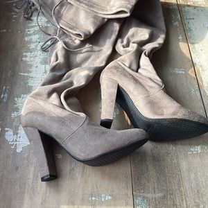 STEVE MADDEN NORRI SUEDE VELVET OVER THE KNEE HIGH BOOTS WOMENS 6 TAUPE