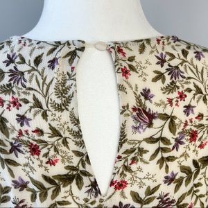 Long sleeve mini dress from UO cut in a relaxed babydoll silhouette. Made from a vintage-look floral fabric in a tiered construction with a crew neck and long balloon sleeves. Complete with ruffle trim at the waist and a keyhole cutout with button closure at the back.