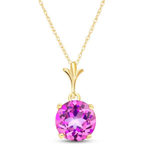 14K. SOLID GOLD NECKLACE WITH NATURAL PINK TOPAZ (Yellow Gold)