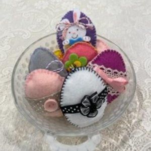 Set of 8 Felt Eggs that can go into a bowl for decoration or add to any Easter basket. 3" Tall. Handmade by me. New.