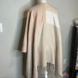 Soia & Kyo Blanket Scarf Poncho Wrap With Fringe One Size Neutraul Tones NWT
