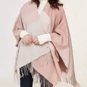 Soia & kyo large blanket scarf poncho - One size fits most - Color: Tan, cream and blush pink - NWT (small mark on back - see picture on the back) - Crafted with signature woven fabric - Modern colorful blocking design with simple fringe edge - It drapes beautiful over the shoulders - Staple for an effortless change in seasons - Cozy material - 100% acrylic