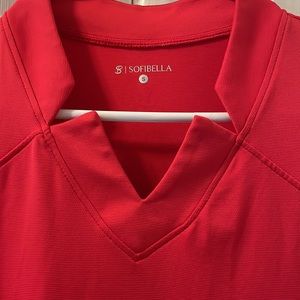Size small, Sofibella, Roulette (red) ladies golf sleeveless top. Really soft material! Flattering on, and it’s new.
