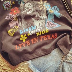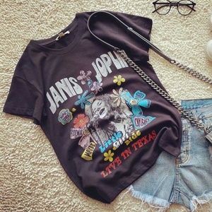 Boho Black Janis Joplin Floral Graphic Tee Rock