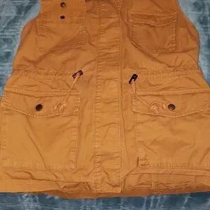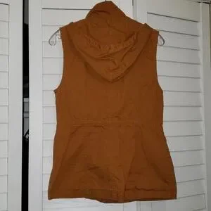 Love Tree sleeveless utility vest with hood in mustard