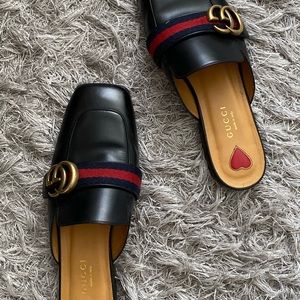 Gucci flats leather black slides mules