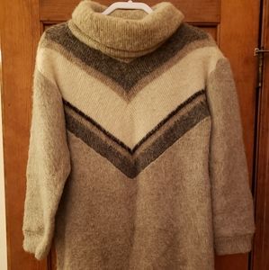Beautiful vintage Icelandic sweater with a turtleneck. it is generously long (about 29 inches) and could be worn as a sweater dress. Labeled size large