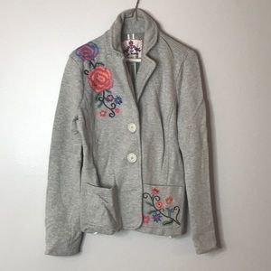 Gently loved, one of my favorite pieces. JWLA Johnny Was Los Angeles Heather Grey Floral Embroidered Cotton Long Sleeve Blazer
