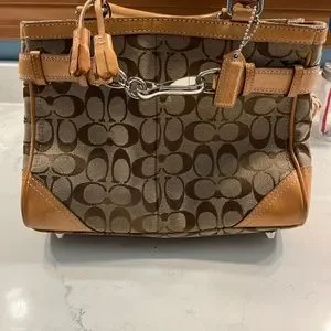 Beige coach bag. Small handbag. Good condition. Preserved in storage pouch.