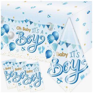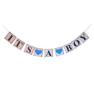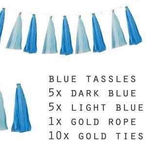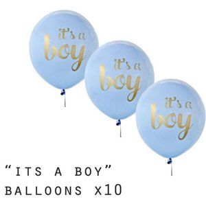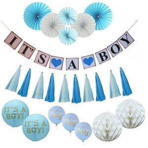 you get n It's A Boy banner, 10 It's a boy balloons, 2 It's a boy lanterns, 2 dark blue fans, 2 light blue fans, 2 white fans, 2 honeycomb & a tassel banner!