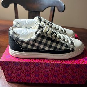 Tory Burch Classic court sneaker black gingham / perfect black size 9.5